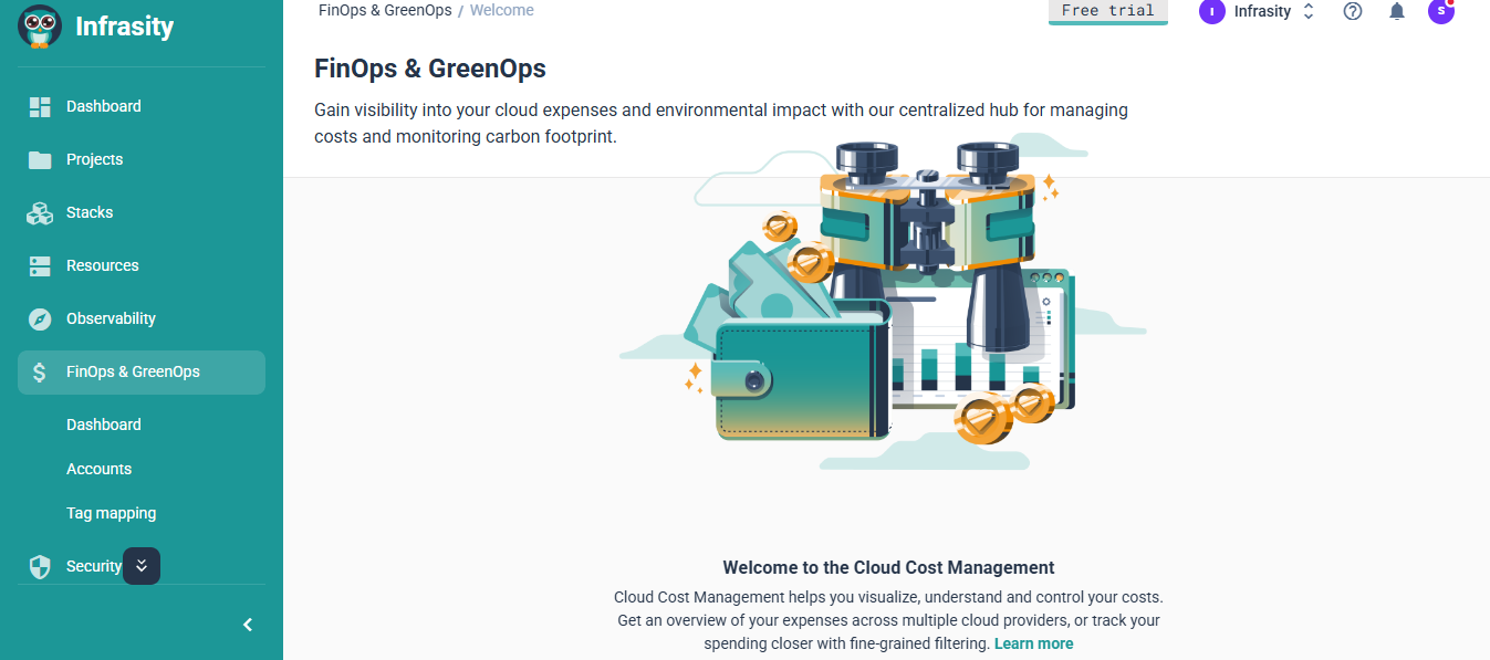 The platform can also include optional views, such as cost and carbon insights, without forcing developers to leave the main interface.