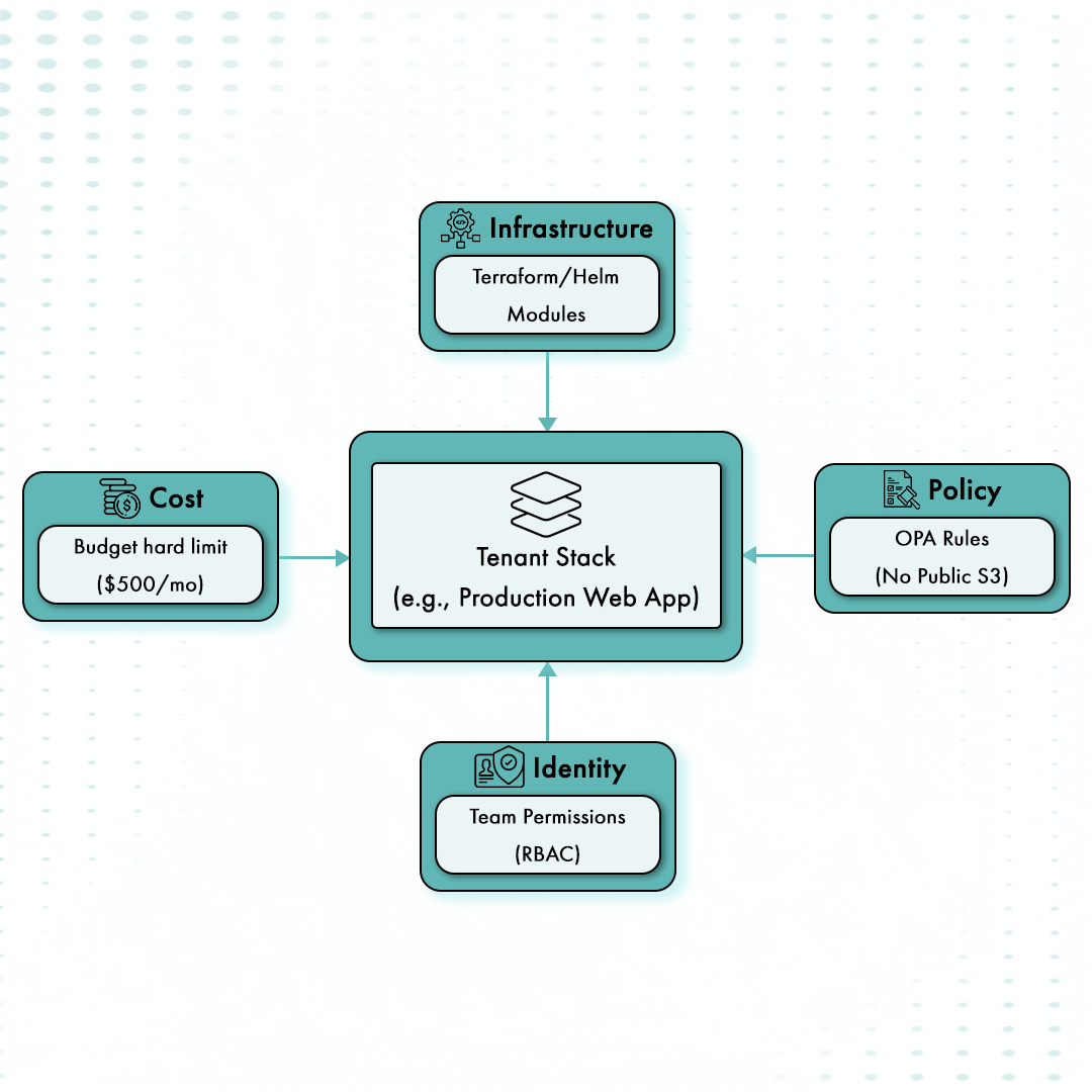 The platform becomes aware of tenant boundaries, allowed regions, network rules, and cost limits. Decisions happen before resources exist, not after problems appear.