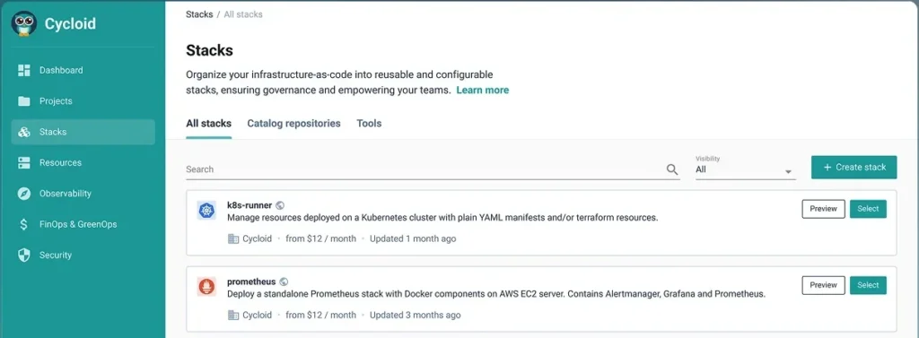 Estimez les coûts avant déploiement, visualisez les prix et empreinte carbone, gérez vos ressources cloud dans un environnement multi-cloud. Cycloid offre 80 % des fonctionnalités prêtes à l’usage, avec possibilité d’ajouter vos outils ou plugins personnalisés.