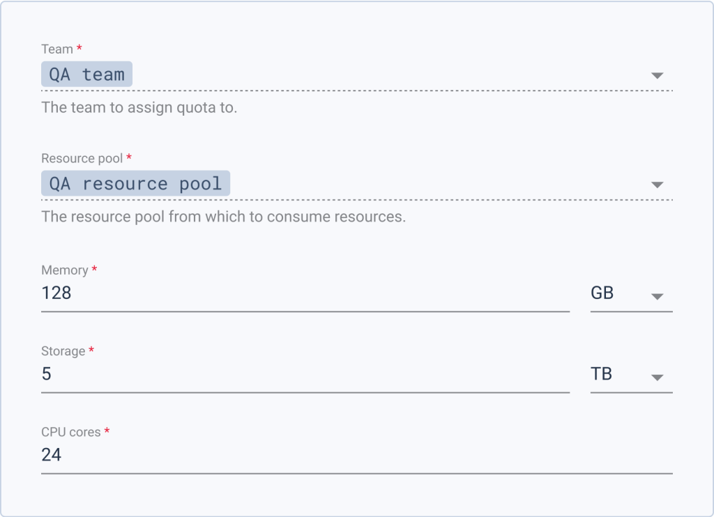 Using the pool, create quotas and assign them to teams in your organization.