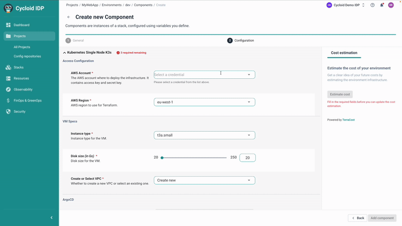 See cost and carbon alongside deployments, per team, per stack, per environment, and act on it. Cycloid’s FinOps & GreenOps expose hotspots and trends; official and custom plug-ins let you add billing data, or anything with an API, creating custom workflows that fit your ecosystem.