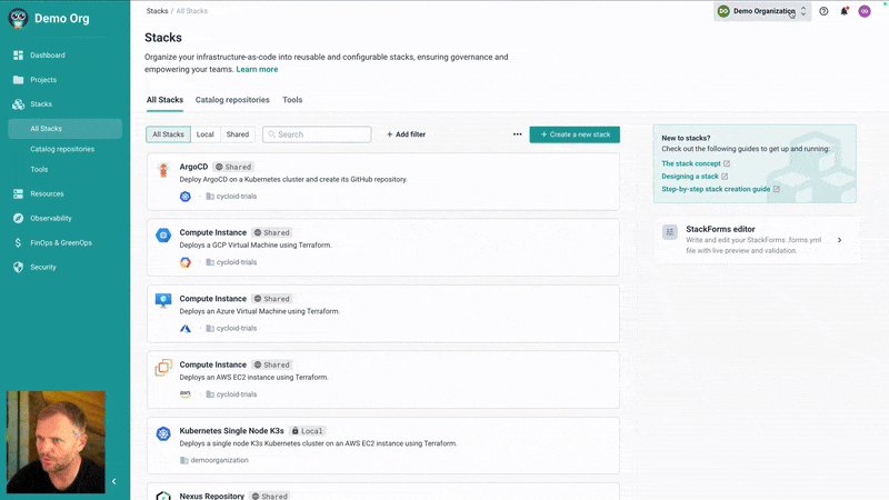 Give teams self-service without losing control. Cycloid templates standardize golden paths for infra and apps, while Asset Inventory maps resources across clouds and orgs in real time. Developers launch what they need; platform teams keep governance, guardrails, and control.